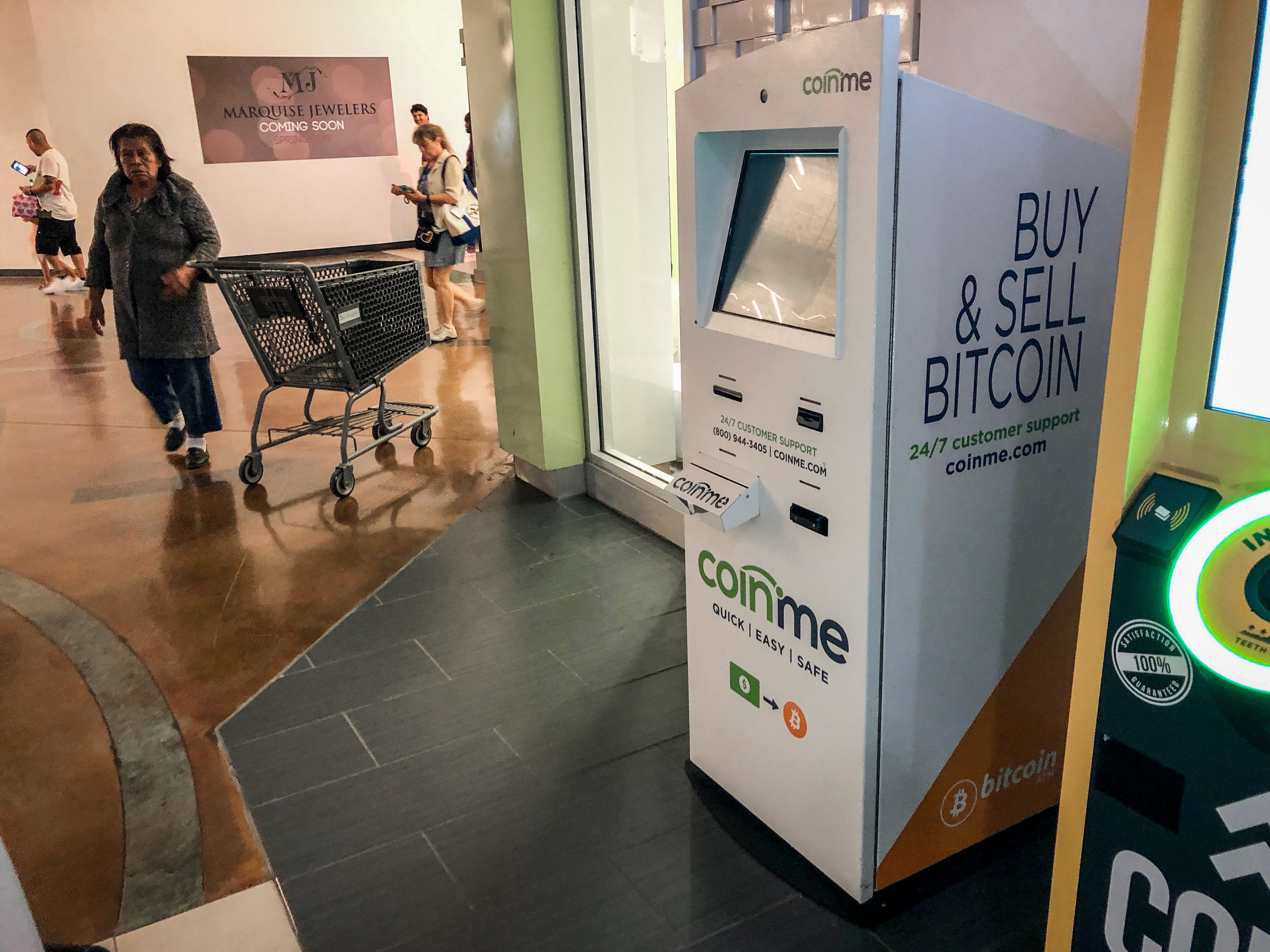 A Coinme Bitcoin ATM machine sits near the entrance of Grapevine Mills Mall. Photo by Will Baldwin